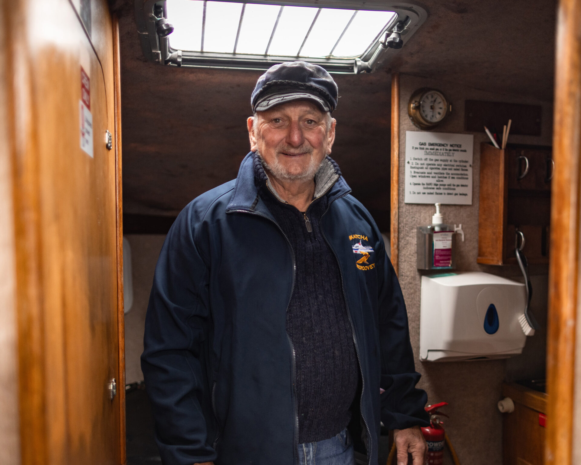 Perchennog Mikatcha, cwch i’w logi, yn gweithredu allan o Aberdyfi